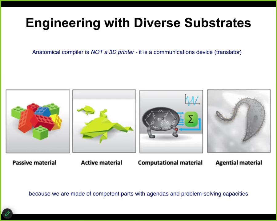 That's largely because we've been thinking so far about either passive matter, now increasingly active matter and computational materials. In biology, what we're dealing with is what I call an agential material. It's a material that at multiple scales has agendas and problem-solving capacities, which we have largely not yet taken advantage of.