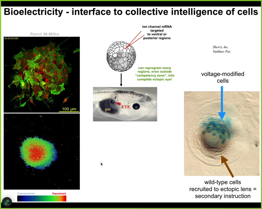 We have ways to read and write electrical states into non-neural tissue. We've developed these techniques over the last 20 years to take all of the tools of cognitive neuroscience and bring them into understanding the decision-making, the memories, the problem-solving capacities of non-neural cells in navigating the space of possible shapes. Because we understand what the cognitive glue is, we can start to use that as an interface to communicate new goals to the tissue.