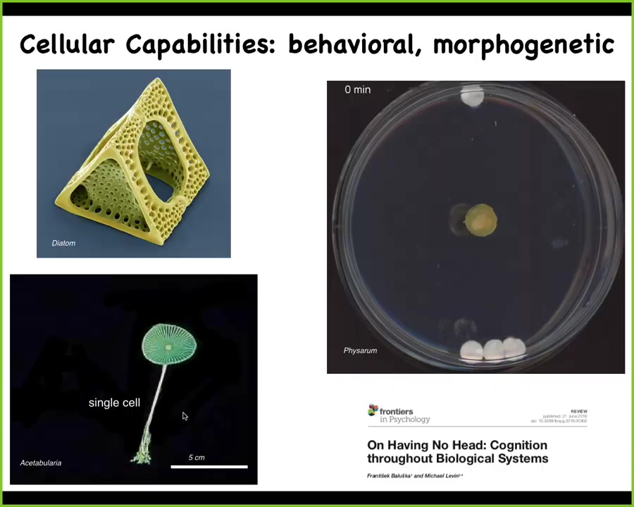 Even very primitive single-cell organisms have these amazing morphological and behavioral capacities. In fact, here your behavior is the change of morphology. This animal, this creature straddles those two problem spaces.