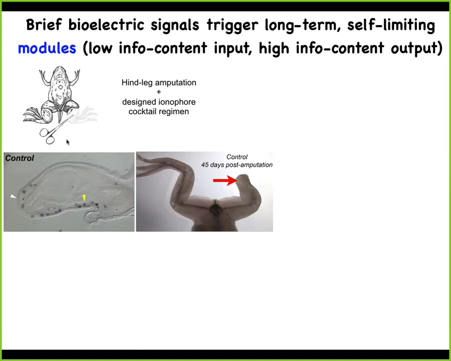 This is potentially very useful for regenerative medicine. Adult frogs at this stage do not regenerate their legs. We came up with a bioelectric cocktail that triggers a "build a leg here" cascade.