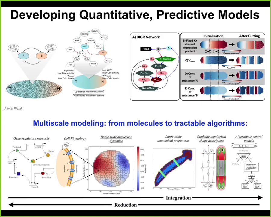 I just want to say that the key to all of this is getting a nice multi-scale view, a full stack model of what's going on from the molecular networks that express ion channels. Here's where your hardware is determined. Then to understand the physiology that gives you the bioelectric gradients. We have a simulator that allows us to do all this, written by Alexis PITAC. To understand the logic and eventually get it down into an algorithmic model of how regions make decisions about what they're going to be.