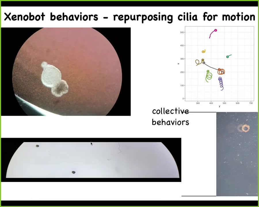 Here's a Xenobot doing a maze. Still water, no water movement; it takes the corner without having to bump into anything. At this point, it spontaneously turns around and goes back where it came from. All of this is skin. There are no neurons here. There's no brain, just skin. You're starting to see the novel behaviors and capabilities, both morphogenetic and behavioral, that are in this tissue.