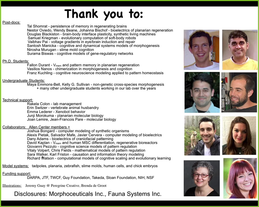 Not only the ability to specify organs at a high level, but the ability to take care of all the morphogenesis and, in fact, the recruitment, the scaling of agents to your task is done in an automatic way that we do not have to micromanage. This is great for engineering, for bioregenerative medicine. These things have all kinds of interesting capacities that we do not need to micromanage. We can take advantage of them.
