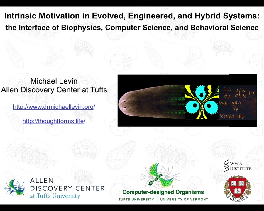 This is a ~1 hour talk I gave at the Oxford Robotics Institute called "Intrinsic motivation in evolved, engineered, and hybrid systems: the interface of biophysics, computer science, and behavioral science". It covers our work from the perspective of motivations - what are they (in various unconventional agents, spaces, and scales), how can we predict/change them, and where they "come from".