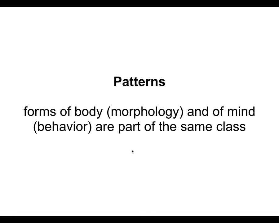 The reason I say that shape, the forms of behavior and anatomy are the same thing is because they are underlied by a symmetry of this notion of a space.
