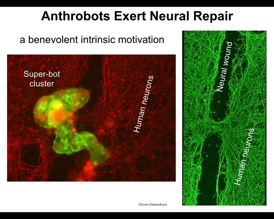 This is just the first thing. It's probably a million other things that they do that we're investigating. But this was the first thing. So I call this an intrinsic motivation because we didn't have to teach them to do this. They were not selected for this because this has never happened before. There's never been any anthrobots. They were not trained to do this. They were not designed to do this. They were not engineered to do this.