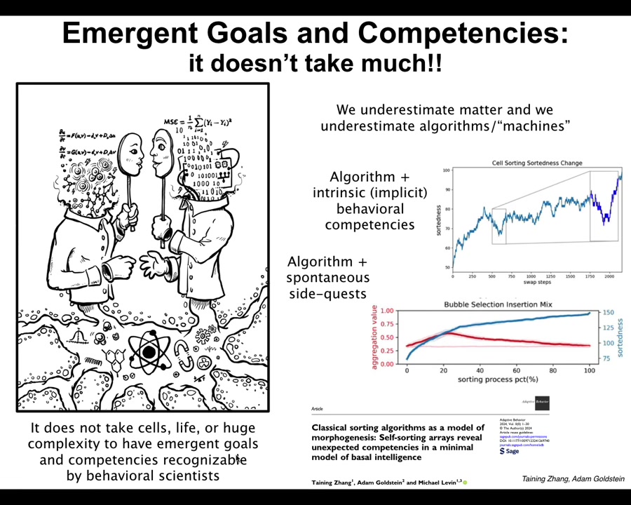 We decided, exactly to address this issue, because I don't believe that this is a property of only very complex living systems. For maximum shock value, I wanted to take the simplest, most deterministic, most familiar thing that we could. And so we took sorting algorithms, like bubble sort, selection sort. Just a few lines of code, completely deterministic, totally transparent, unlike biology where there are more mechanisms; there might be quantum biology. In this case, you exactly know what the algorithm is. There's nowhere to hide. There are no more steps. You see all the steps.