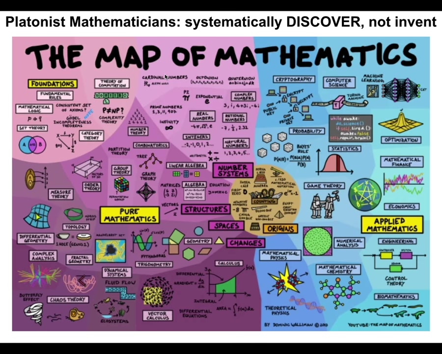 The mathematicians do something interesting. They think that these patterns come from an ordered, structured space. They're not a random grab bag of things that show up as a surprise from time to time, but an ordered space. One way to think about it is a Platonic space; Plato talked about something like this, a space of objects that are not determined by physics, not determined by evolution.