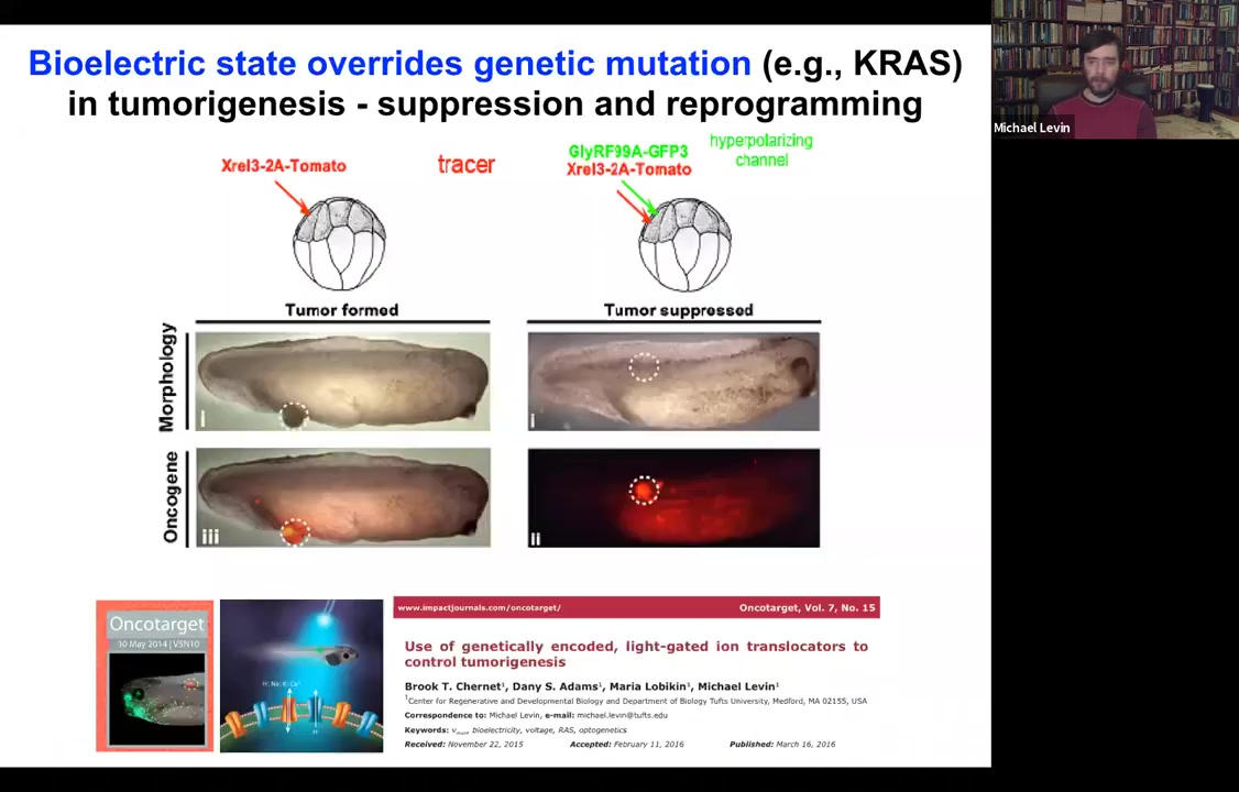 Dominant negative KRAS, p53, while blazingly expressed, there's no tumor. It's the same animal. There's no tumor because these cells are coupled to this electrical network that forces them towards a proper tissue fate.