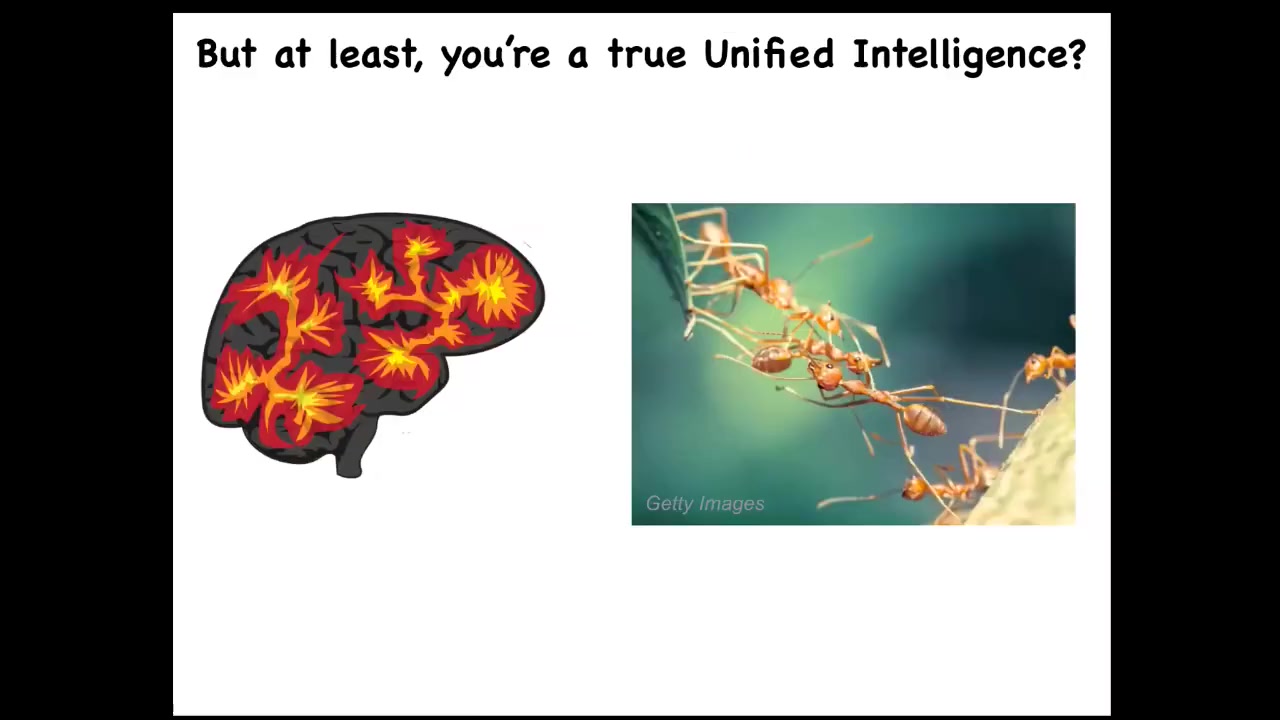 We're not really a collective intelligence like ants and beehives. Maybe those can be called a collective intelligence, but they're not like us. We're a true unified intelligence.