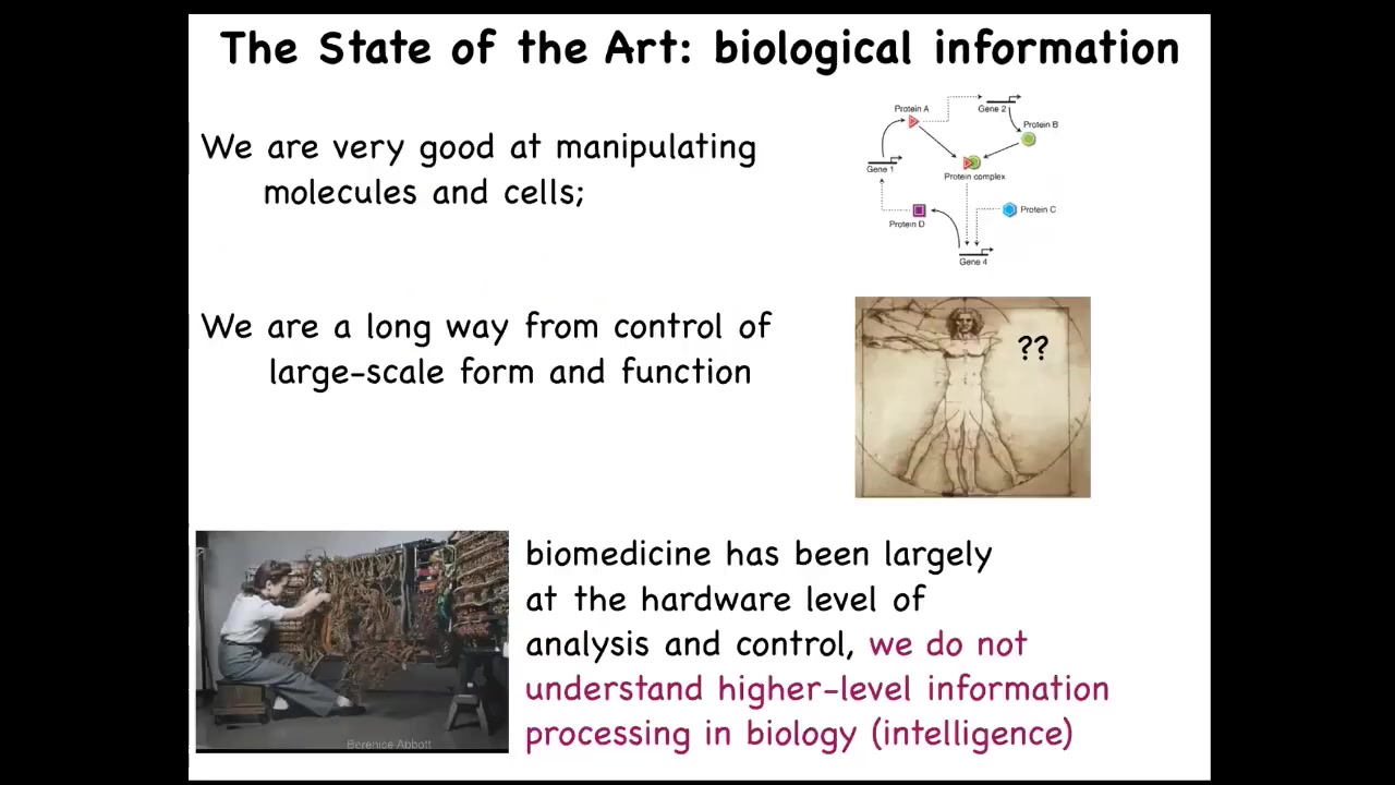 I'm going to argue that biology is exactly that kind of hardware, which, for neurosciences, is not exactly news. For molecular and developmental biology, this is a different way of thinking. This idea is that we've only begun to scratch the surface of what's actually possible. We have not really understood the amount and the type and the tractability of information processing and intelligence or problem solving at different levels of biology.