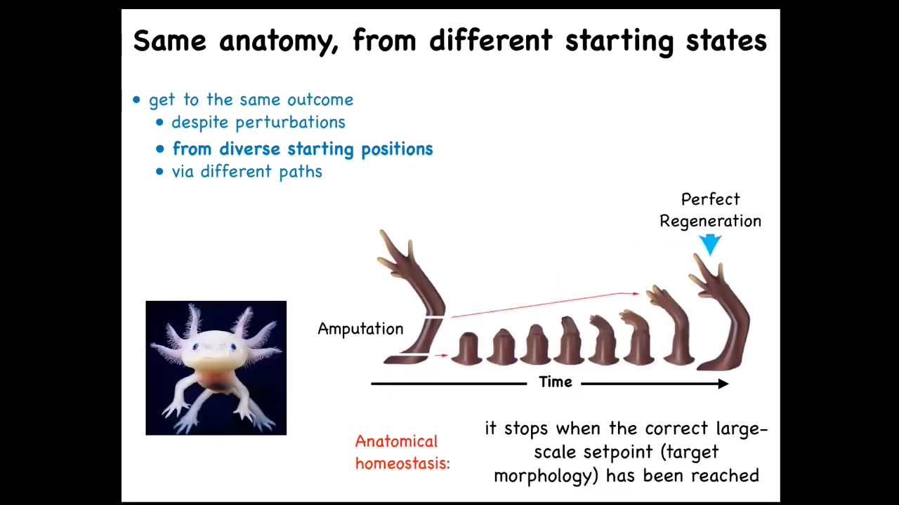 So now that we've seen that collectives of cells can solve various problems, remember, the problem that they solve is how to walk a particular path through anatomical amorphous space that starts out as a single cell, for example, or a healthy organ in the case of regeneration, and then is deviated from that to a different location and then knows how to come back despite various perturbations. There are remarkable examples of this; they're all discussed in our papers.