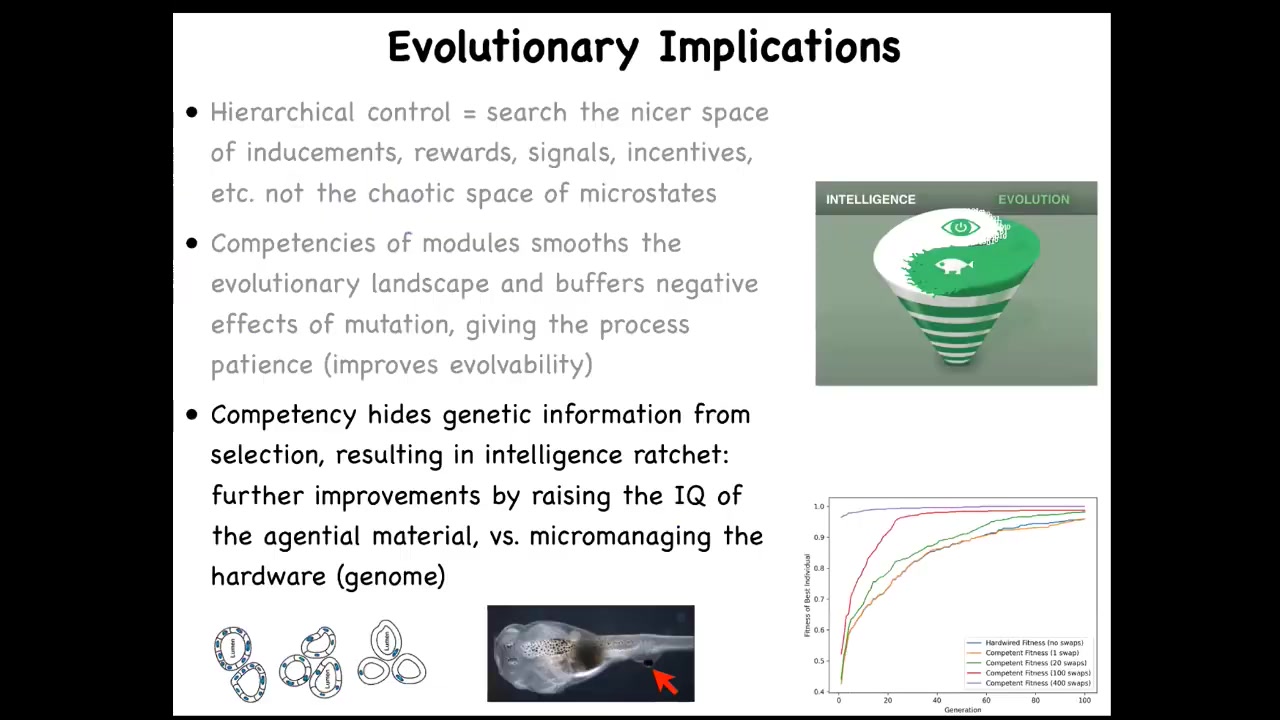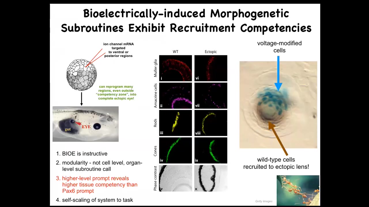 There's a secondary instruction event taking place where these cells tell these other cells, you need to work with us to make this eye. We don't have to program that in both the eye induction and the scaling to the task. All of that is a native competency of these collectives if you know how to activate them.