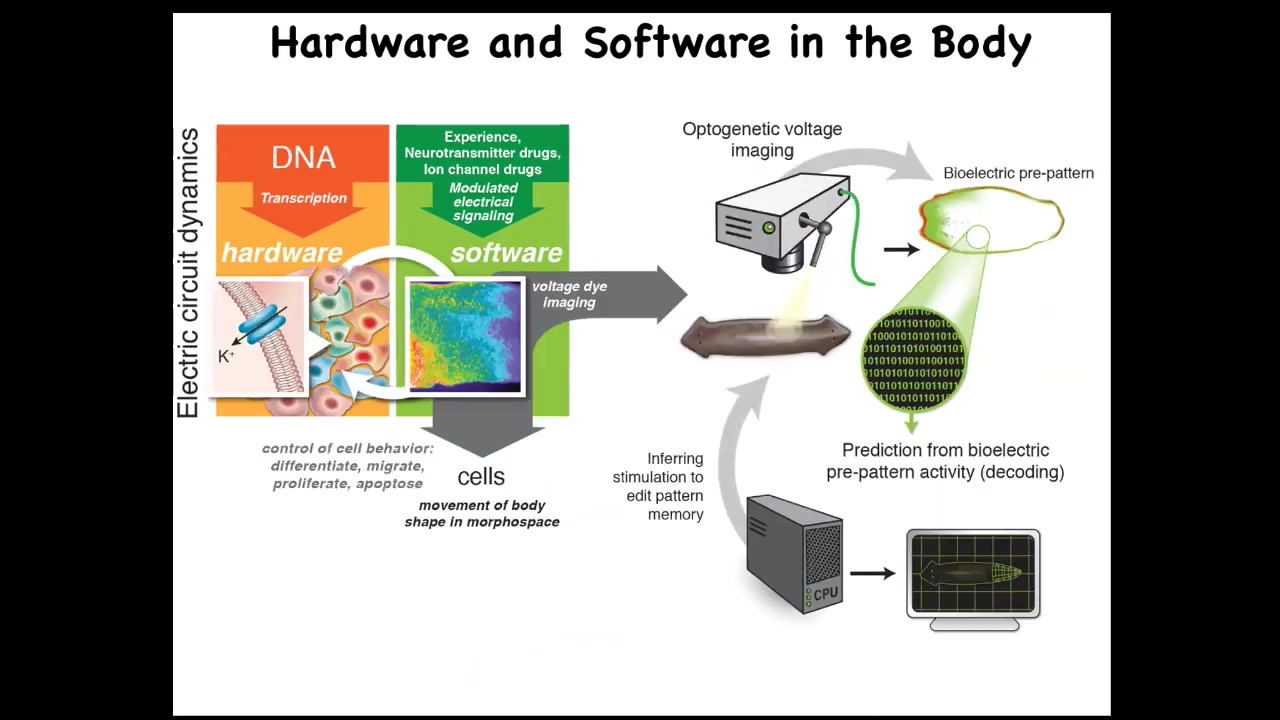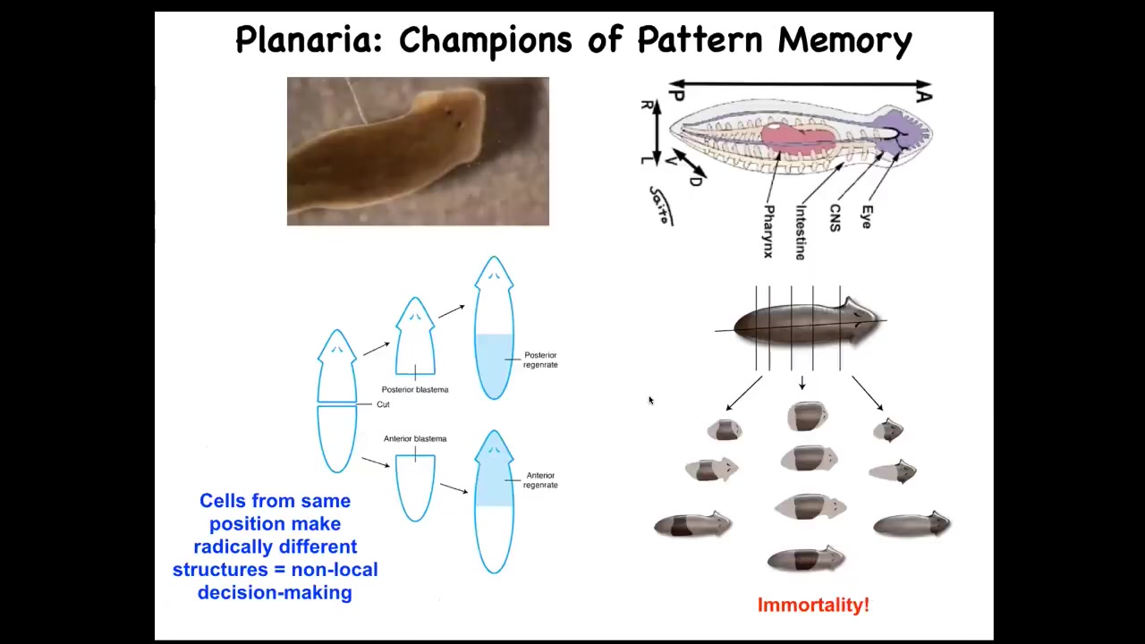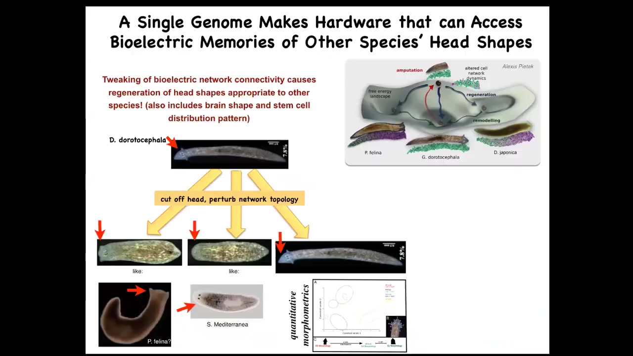 The next story I want to tell you has to do with planaria, because I want to hammer this idea of bioelectrical pattern memories being literal representations of navigation in this anatomical space.
