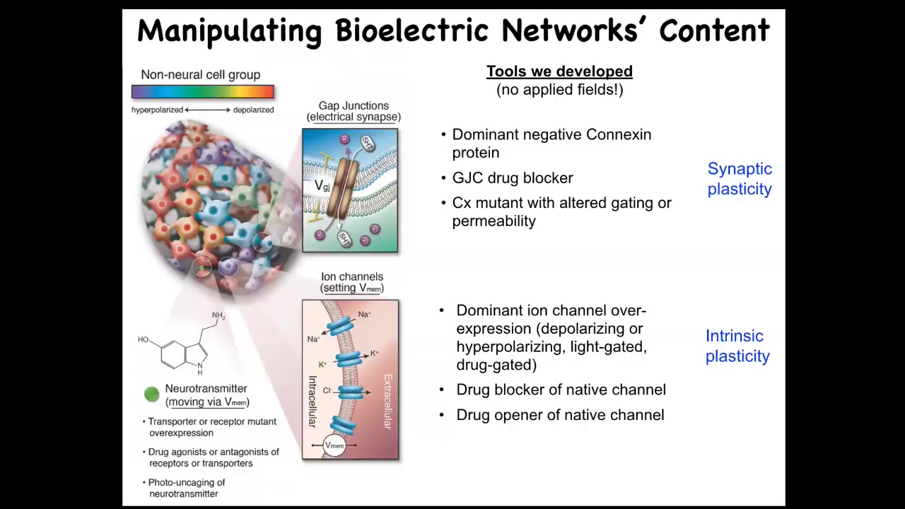 In addition to the imaging, the most important thing is functional. Can we manipulate these bioelectrical patterns and show that they're functionally critical for what the morphogenetic collective does next? I have to stress, we do not use any applied fields. There are no magnets, there are no frequencies, no electromagnetic waves, no electrodes.