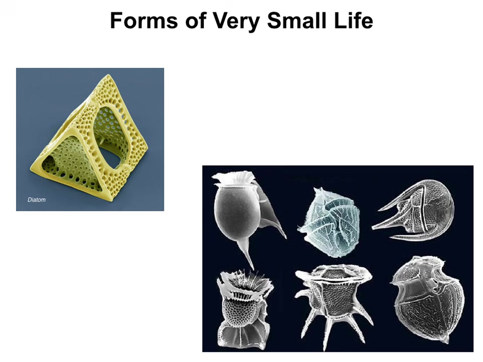 First of all, we can look at some really intricate and definitive biological forms. So here are some diatoms. These are very small things. These are tiny on the level of a single cell. And all of these are quite specific. And we need to try to understand why exactly these shapes form and not something else.