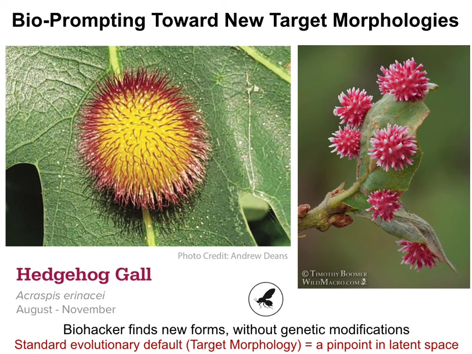You might think that these kind of tricks, being able to find amazing new forms and behaviors and other things that are just not derivable or not expected from the history or the hardware of the system, might require very complicated interfaces, biologicals.