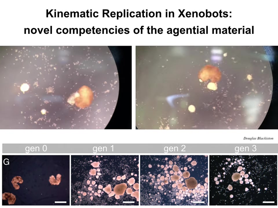 Because they're working with an agential material themselves, these are not passive beads; these are cells. Each one of these piles matures into the next generation of Xenobots. Guess what they do? They go and collect the cells into new piles and make the next generation and the next.