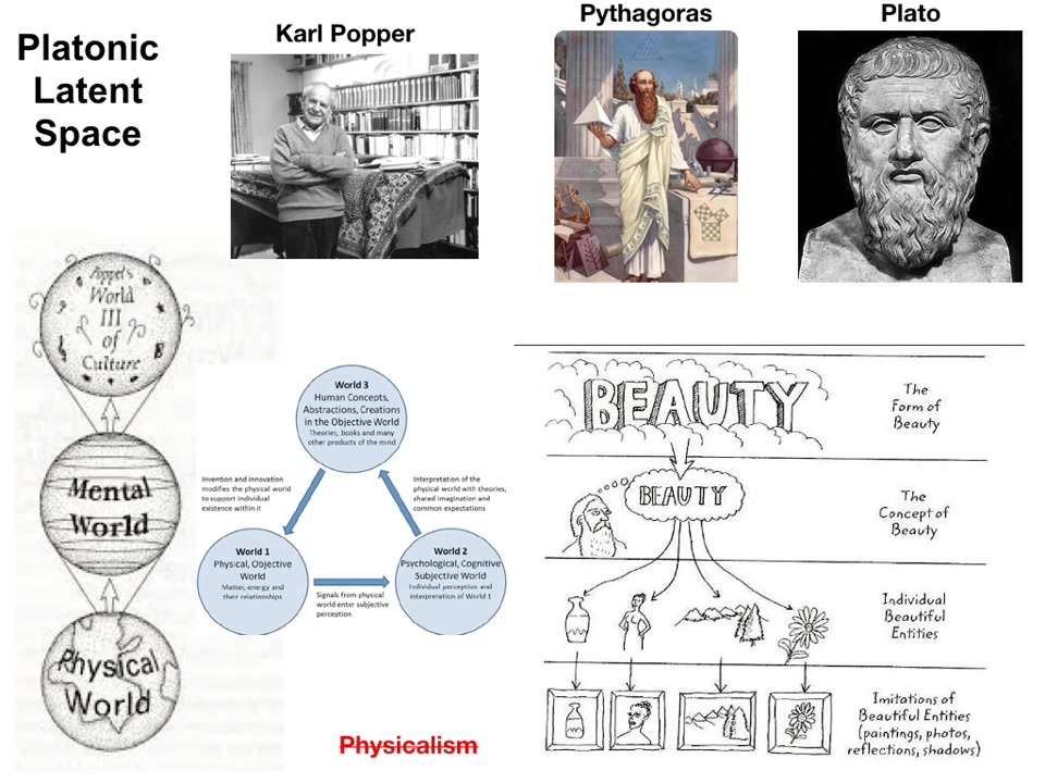 This is not a new idea. This has been around forever. Pythagoras and Plato and modern philosophers like Popper and others had this idea that there is a non-physical space of patterns of different kinds and that these things are in some way functionally important for what happens in the physical world. I only show this to point out that this rough idea has been present before.