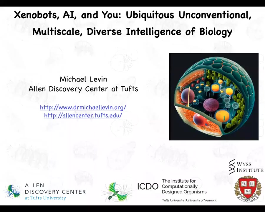 Okay, good morning everyone. I think we can start. Our 4th and plenary talk will be given this morning by Michael Levin. Michael Levin is a professor of biology and biomedical engineering at Tufts University in the US. Like many of you, I first got to know Michael's work through his papers on the Xenobots, a collaboration with Josh Baumgart. But it was after I caught his interview on Lex Fritzman's podcast that I became intrigued by the possibilities of his work. Michael is a very accomplished academic. He has the Vannevar Bush Distinguished Professorship. He is the founding director of the Allen Discovery Center at Tufts and the co-director of the Institute for Computer Design Robotics. His work is at the intersection of developmental biophysics, cognitive science, and computer science. I am very excited about this talk. Without further ado, let's welcome Michael.