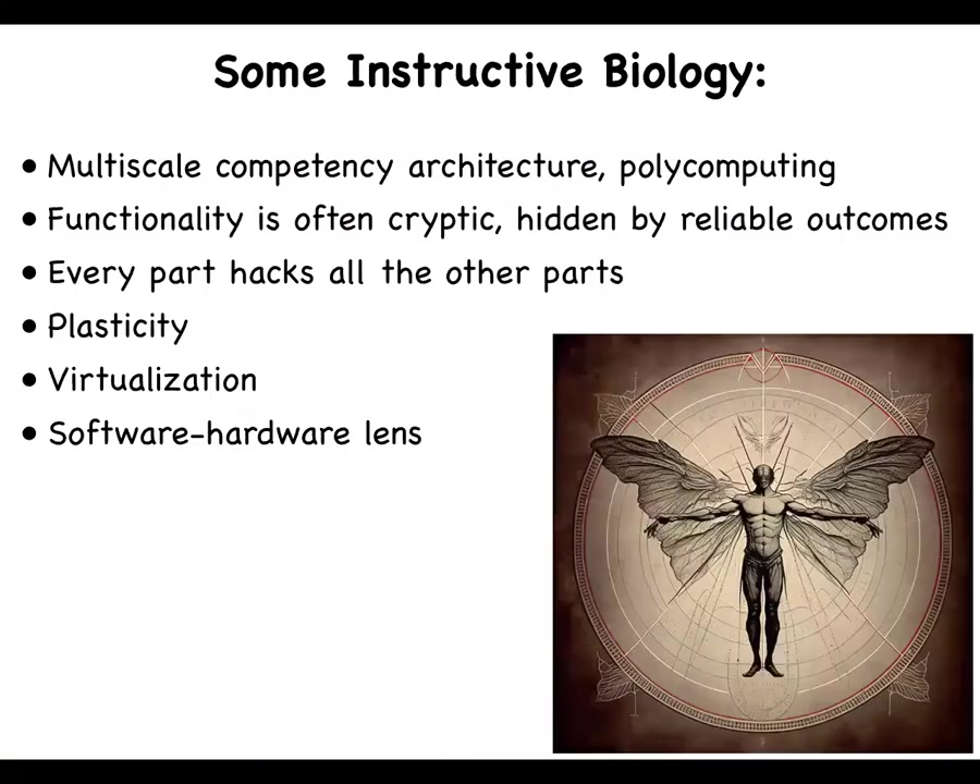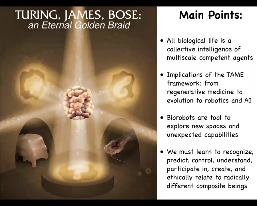 The implications of this — I call this the TAME framework, T-A-M-E, for technological approach to mind everywhere — have many applications from regenerative medicine to understanding evolution to novel robotics and AI to really start to take on board the deep lessons of biology in terms of how the hardware and the software relate to each other and how they implement novel ability to solve novel problems.