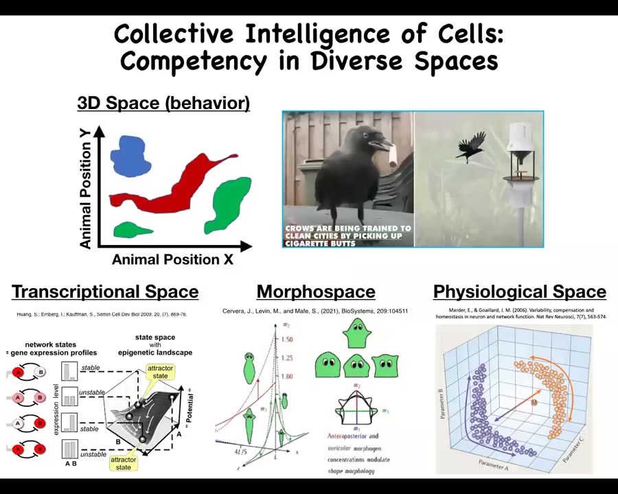 For example, living systems routinely solve problems in navigating gene expression spaces, the space of physiological states, and the space of possible anatomical configurations, or anatomical morphospace. There are remarkable examples, of which I'll only have time to show a few, of problem solving in all of these spaces.