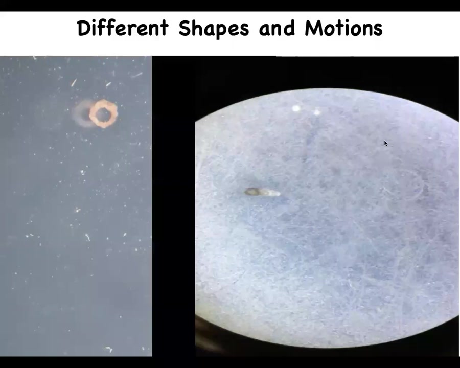 There are all kinds of shapes that you can make. Here, Doug made this donut shape which swims along. There are others that have this motion. This one was made by Pi in my group. They have all sorts of different shapes and motions. Remember, this is just skin.