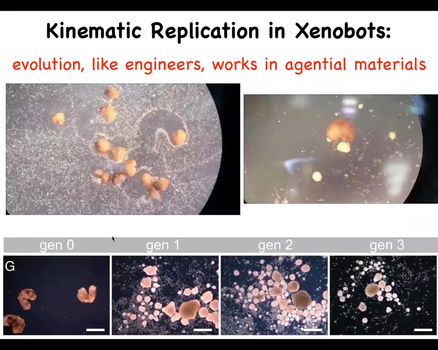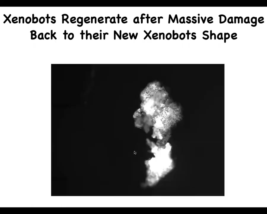 Everything, including this kinematic self-replication — this idea of the ability to make copies of themselves when all of the normal frog reproductive machinery is removed — emerges. This is just skin. They don't have the ability to reproduce the normal way. They come up with a different way. That, to our knowledge, has never existed in evolution before.