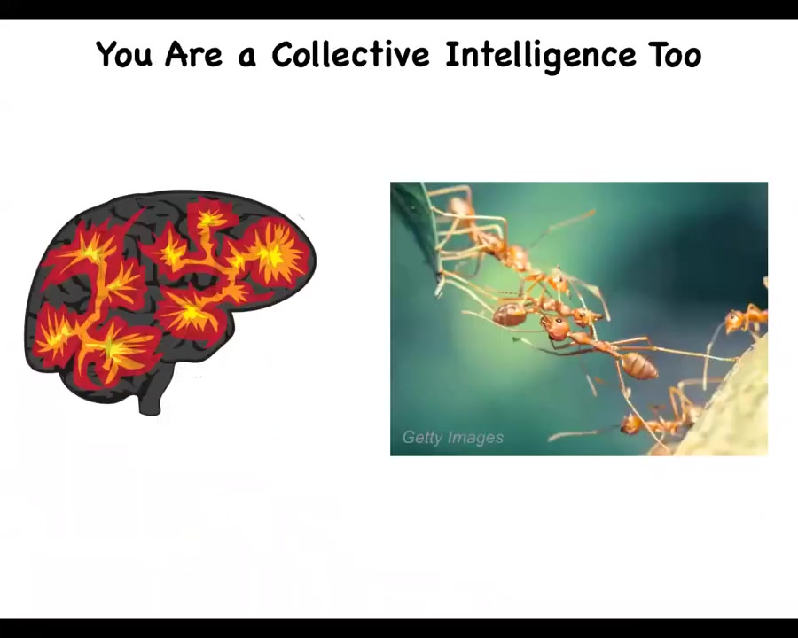 But we are, because it's important to remember that not just ants and termites and beehives and things like this, not just they are collective intelligences, but we are. In fact, all intelligence is collective intelligence. There's no such thing as an indivisible, unified diamond of intelligence that doesn't have any parts.