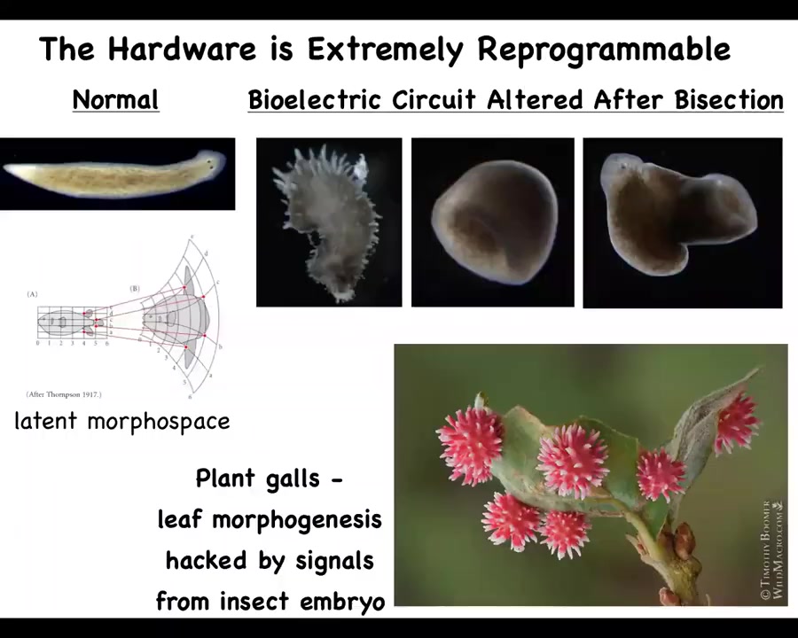 But one thing you can do is you can target that morphogenetic machinery. How do they know how many heads, how many tails they're supposed to have? If all of this is happening, all this unreliable hardware is underneath, how do they remember what's going on here?