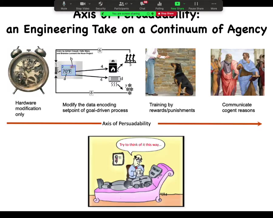 The problem is that a lot of people work in teleophobia, where we're terrified of Type 2 errors of attributing agency inappropriately to something that doesn't need it, and that's certainly a problem. But the other problem is just as bad: if you fail to recognize agency where it could have helped you with prediction and control, you leave a lot on the table. The idea is to find the correct amount.