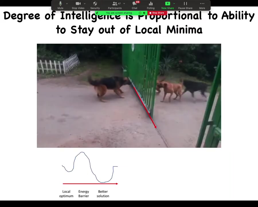 One way to generalize this question of how much intelligence, because I've made the claim that everything's a continuum, is that the real question is not if something is intelligent, but how intelligent is it. One way to define that across all these different systems is to ask, how competent is it at staying out of local maxima?