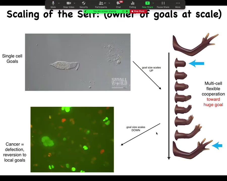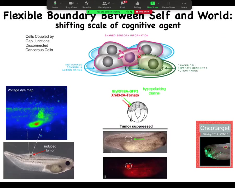 One of the predictions of this set of ideas is that we could probably address cancer by targeting this problem. If what we're saying is that what keeps you working towards healthy tissues as opposed to metastasis is this kind of network of communication that binds you into a larger agent, maybe we can enforce that. Maybe we can track that during cancer and actually enforce it artificially as a method of treatment.