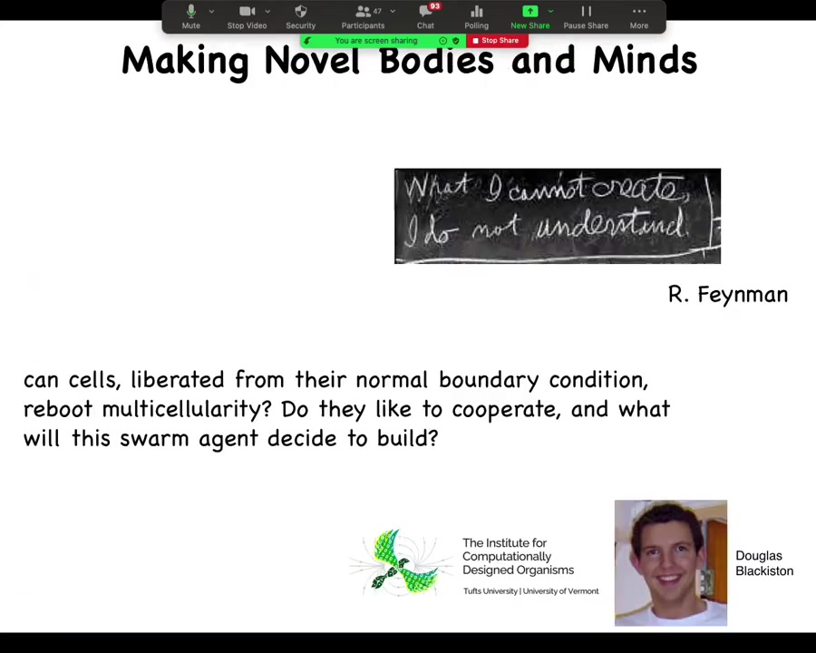 To show you a couple of things, let's talk about how this plays out in two ways. Morphogenesis is a collective intelligence, and then I'm going to show you some novel organisms.
