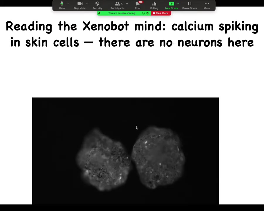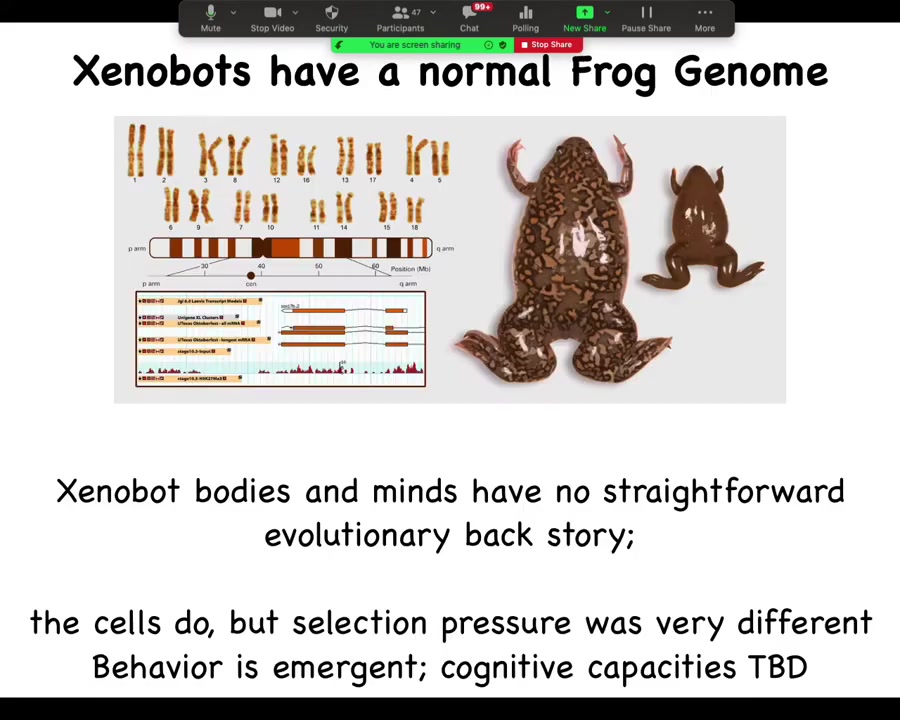 These Xenobots, whatever cognition they have, we have no idea how advanced they are; we don't know if they can learn — we're going to find out. They have no straightforward evolutionary backstory.