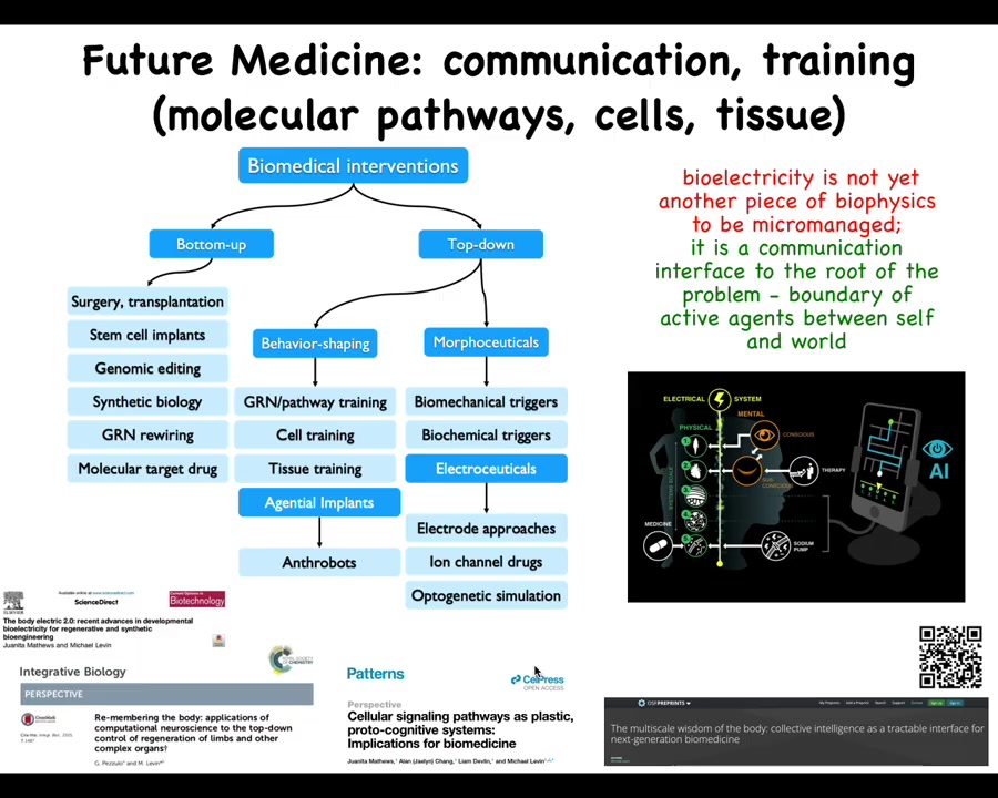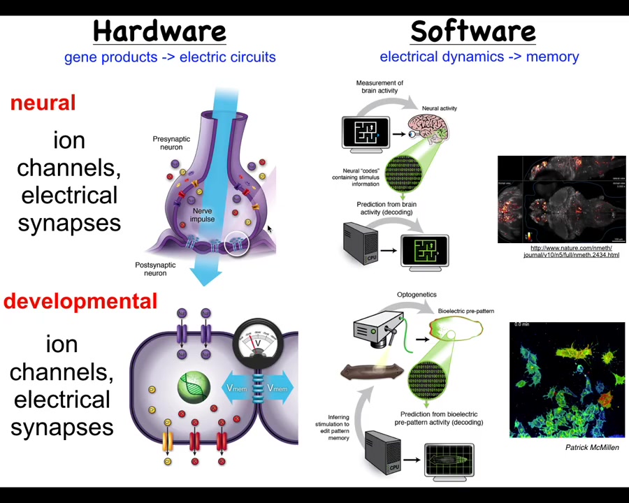 And the last thing is this idea that I really think that the way to think about bioelectricity is not as another piece of biophysics that we micromanage the way we do with transcription factors and signaling pathways. I think when we study bioelectricity, what we're looking at is a communications interface. It's an interface to the root of the problem, which is the boundary that active agents set between themselves and the outside world.