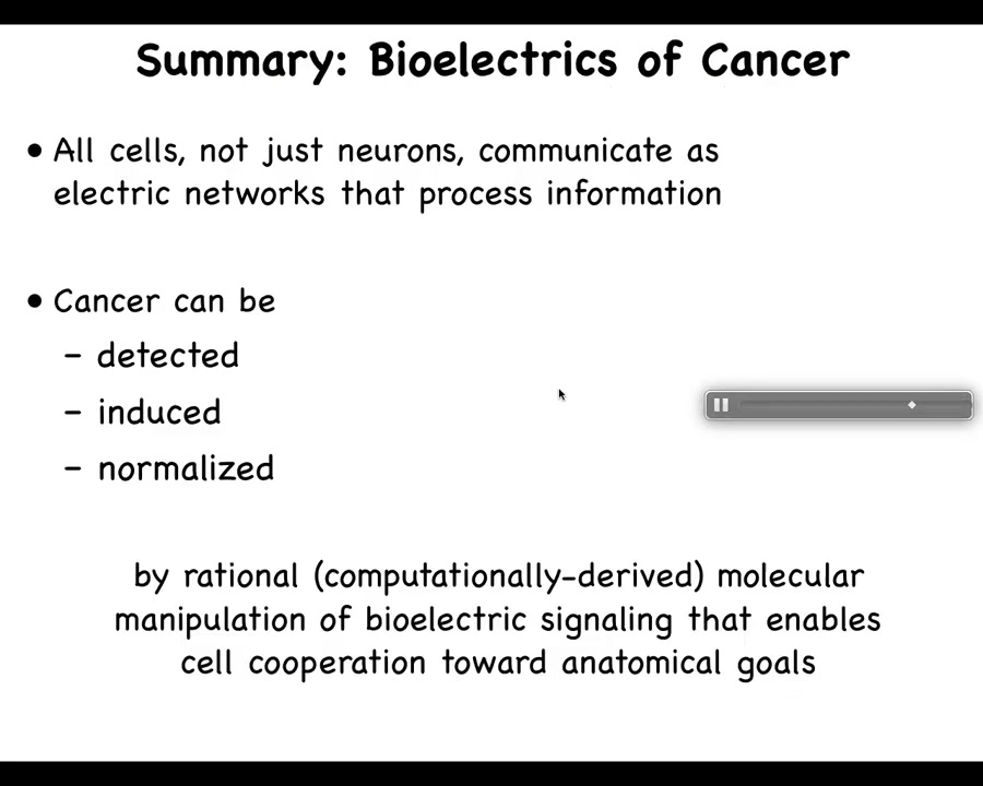 This is a ~45 minute keynote talk at the Bioelectricity and Cancer conference (https://cam.cancer.gov/research/bioelectricity_and_cancer_conference.htm) held at NIH in September 2024.