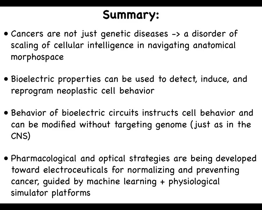 Just a couple of things left to look into the future. I've made the claim that cancer is not just a genetic disease, but actually a disorder of the scaling of cellular competencies in navigating anatomical space. I think that's fundamentally an important way to look at this problem.