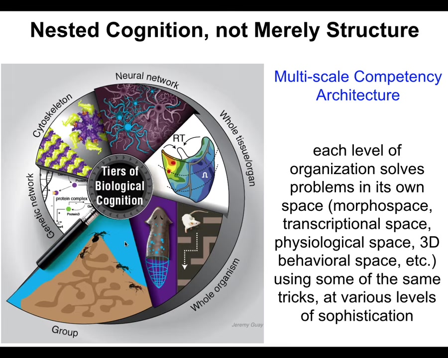 As a model system to try to shape and improve our intuitions and our tools, we use collectives of cells, groups of living cells navigating the space of anatomical possibilities. We have other models, but this is a prime workhorse to try to understand a very unconventional mind that works at a different scale in a different space.