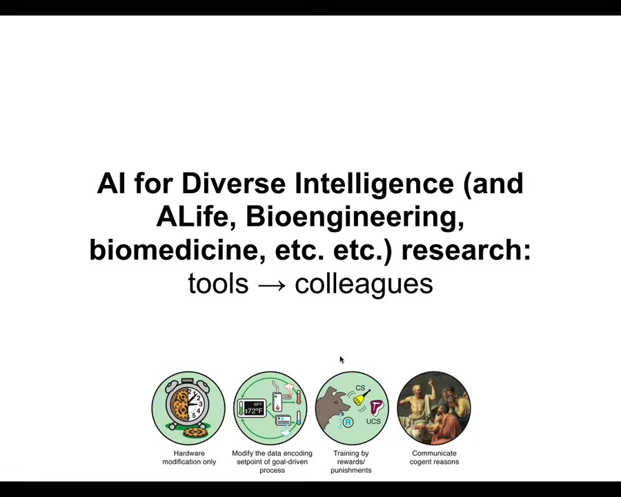 Now we can develop tools to rigorously define what exists on that spectrum of persuadability, to communicate to them via novel interfaces, be they bioelectric, biomechanical, or things we haven't even thought of yet, and to develop new ways to relate to them, because AI, ALife, and the understanding of agential materials are really the future.