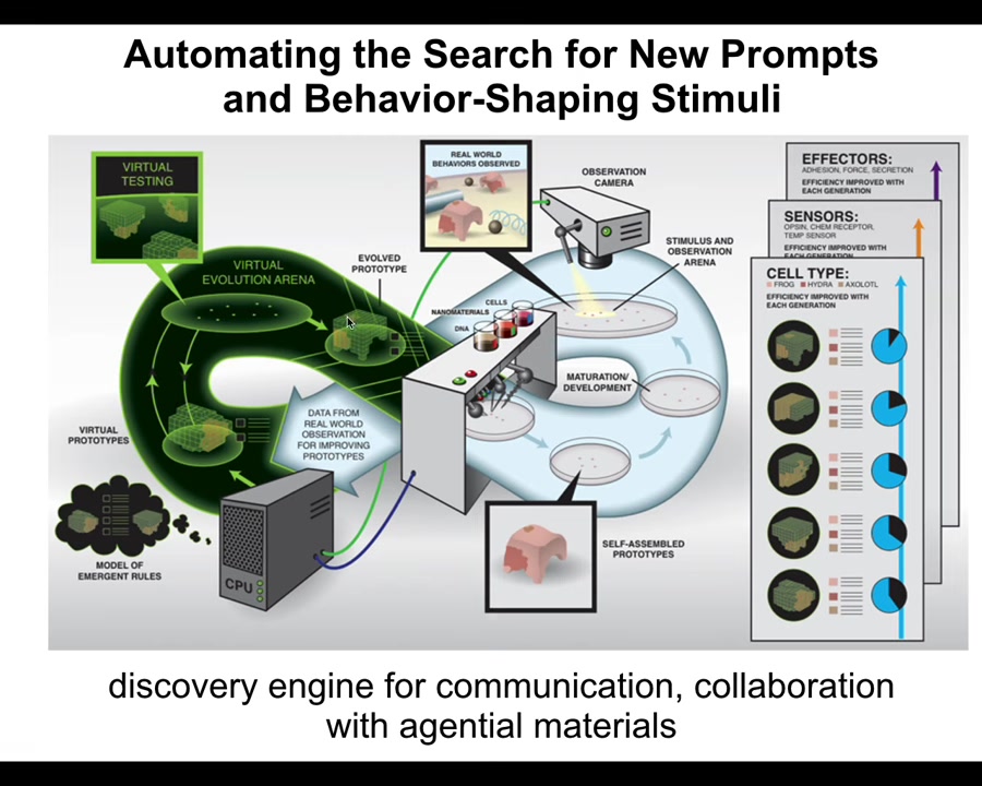So we're incredibly excited about this because not only is it going to help us understand how to make and how to communicate with xenobot materials, it is also, I think, a model system for creating a kind of exploratory AI system.